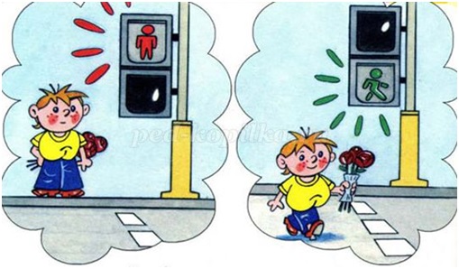 • Следи за сигналом светофора, когда переходишь улицу.